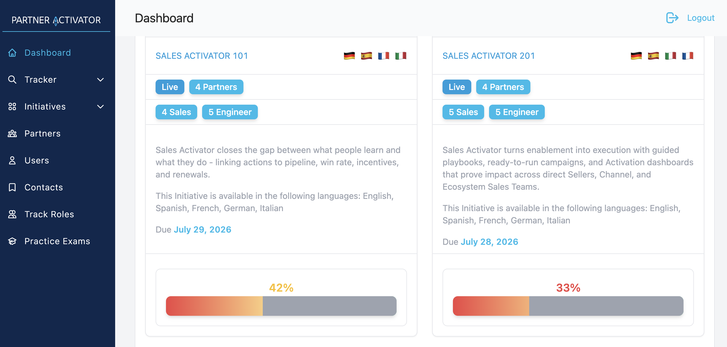 Sales Activator turns enablement into execution with guided playbooks, ready‑to‑run campaigns, and Activation dashboards that prove impact across direct Sellers, Channel, and Ecosystem Sales Teams with AI based translation system wide.